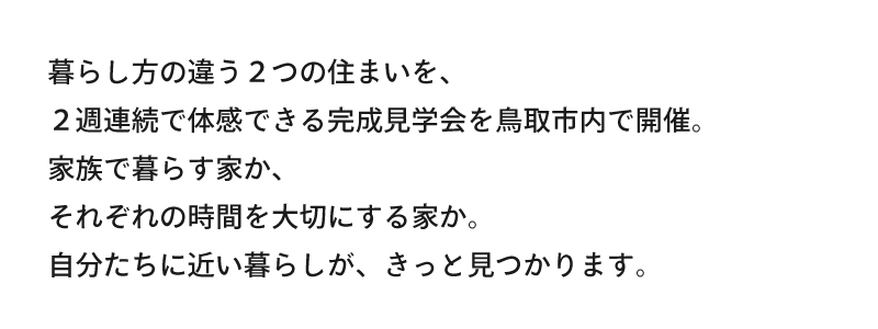【鳥取市】暮らし方の違う2つの住まいを体感する 2週連続完成見学会